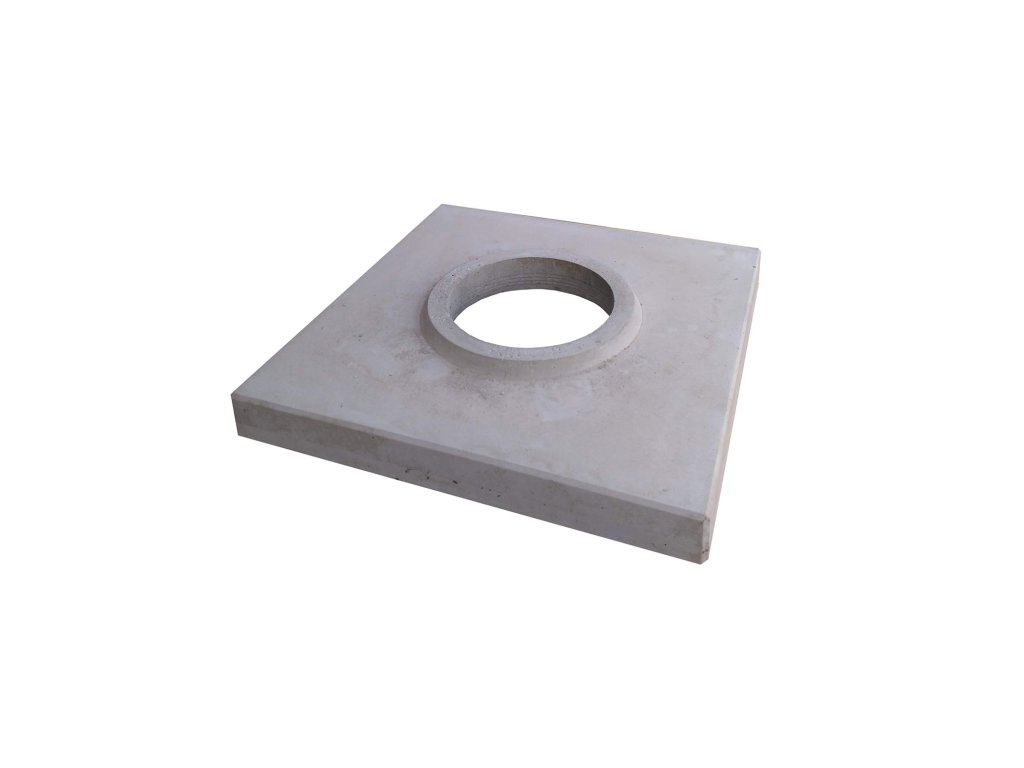 Betonová krycí deska (komínová hlava) pro jednoprůduchový komín. Kompatibilní s našimi tvárnicemi 360 x 360 nebo 380 x 380 mm nebo nadstřešními dekorovými prstenci.